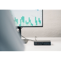 The Docking Station is equipped with a comprehensive array of USB ports to accommodate all your desktop accessory needs. For lightning-fast data transfer, the Docking Station features USB-A 3.2 Gen 2 and two USB-C 3.2 Gen2 ports, delivering speeds of up to 10Gb/s. Additionally, two USB-A 3.2 Gen1 ports offer speeds of up to 5Gb/s. For legacy devices, there's a USB 2.0 port providing speeds of 480Mb/s.