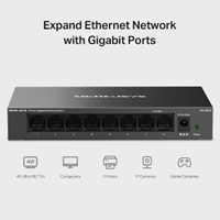 Quickly expand your wired network with eight 10/100/1000 Mbps Ethernet ports—10 times faster than regular 10/100 Mbps Ethernet ports. MS108GS is flexible and fully compatible with 4K Ultra HD TVs, computers, printers, IP cameras, game consoles, and more. This makes it perfect for use in home, small office, and even dormitory environments.