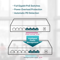 When total power consumption exceeds 64 W, the intelligent power management will cut the lower priority port power. This ensures the high priority port’s power supply and protects the device from power overload. It also automatically detects and provides the required power for your PoE devices while protecting your PoE and non-PoE equipment from being damaged.