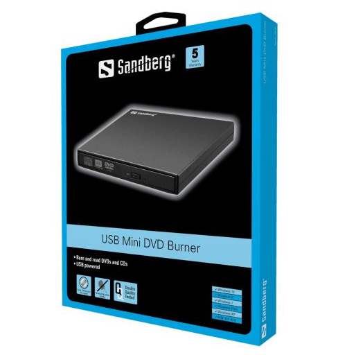 The perfect addition to a computer without a CD drive or DVD burner. This Sandberg USB Mini DVD Burner enables you to burn and read CDs and DVDs all powered from your computer's USB port. Convenient for on the go with no need to locate a power point. Also doubles as a great mobile DVD player for your device. No software installation is required, enabling you to use the drive instantly.